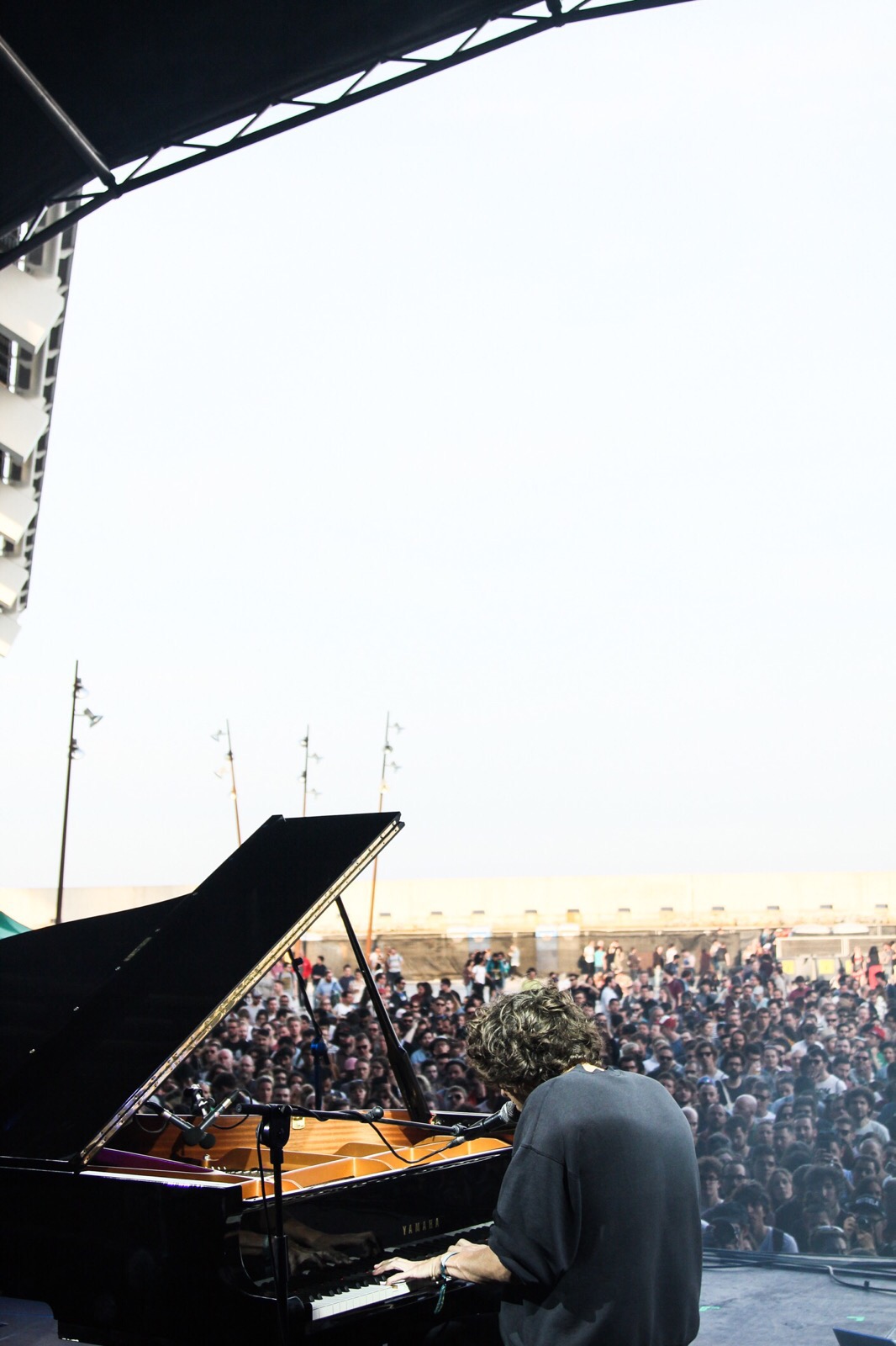 从去年底开始被众多媒体力捧的加拿大钢琴创作才子Tobias Jesso. Jr,不出意料地出现在了Pitchfork Stage。天还没黑,舞台上一架YAMAHA钢琴和一个钢琴凳,舞台下人数并没有想像得多。彼时不远处的ATP舞台是The New Pornographers,五人的乐队编制无论在气势和音量上都完全胜过了一人的钢琴弹唱,并且高潮迭起。为此Tobias不得不好几次刻意停顿,示意调音师拉高台上返听的音量。