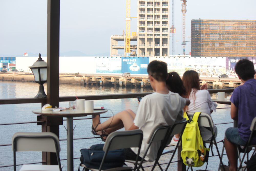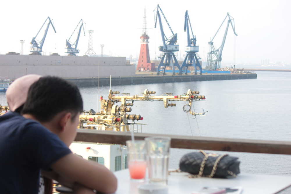 书店的另一部分是咖啡馆,而咖啡馆又分为室内和室外两部分,从咖啡馆室外的部分眺望出去便是大海,在昏黄灯光的书店里待多了,走到这里颇有点豁然开朗的感觉。
