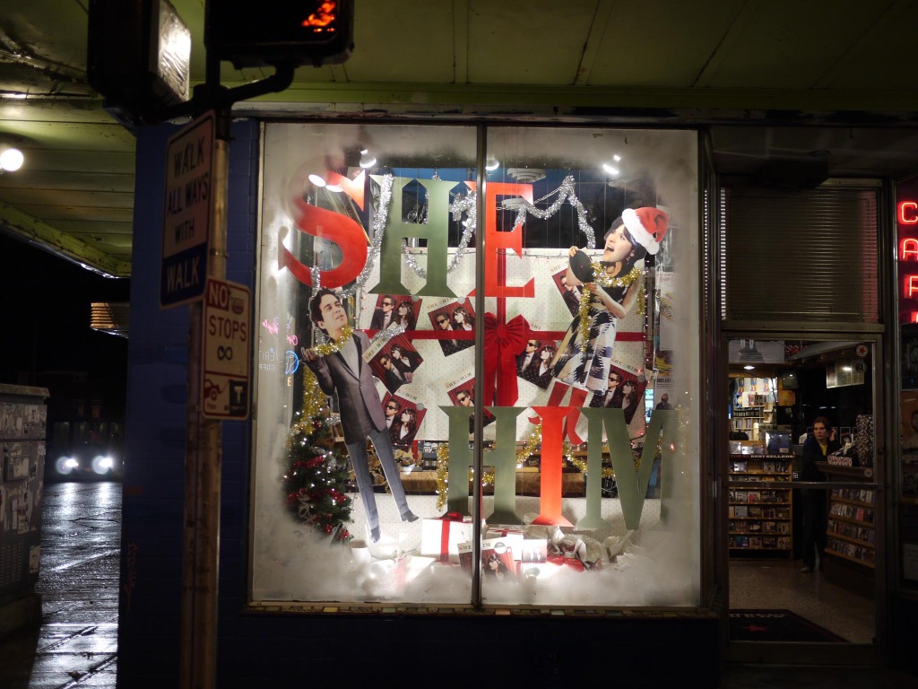 最后说个特别好玩的事情。乐队厂牌Merge为了宣传这张圣诞专辑,进行了一个独立唱片店间的比赛活动,看哪个店能将这张圣诞专辑的专区布置得最好看。以下是最终获胜的布置,还挺有创意的吧?