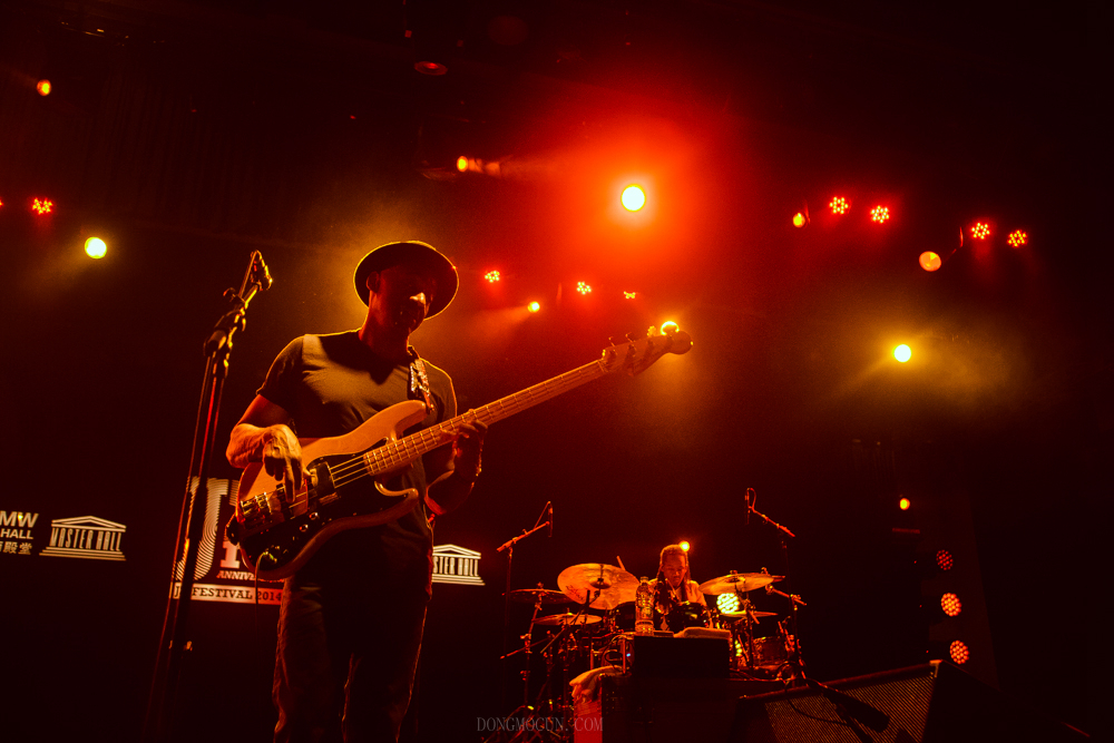 夜幕降临时分,乐迷迎来了Marcus Miller。开场曲是”Blast”,那经典的贝斯音符一遍又一遍撩动着我们的神经。紧接是一部分《Renaissance》中的曲子——它们在录音室专辑中仅有五分钟,现场却摇身一变,加上各色即兴,持续了二十分钟有余。其中要数”Detroit”尤其出彩:先合几遍主调,高潮来啦!乐手轮番Solo,Marcus除了炫技以外,更多地,还负责带领整个乐队进入状态,让每个成员极致发挥,即兴过程中充满了不可预料。萨克斯手Alex收放自如,演奏像进行一场谈话,时而高声,时而低语;又比如键盘手,他有时甚至左右手分别盲弹两台琴,独奏时则更专注于一台,手指在琴键上纷飞;吉他手呢,风格更加摇滚乐,穿着Nirvana的T恤,速弹起来丝毫不逊一流金属乐队的吉他手;小号手与鼓手表现机会不太多,技术依然过硬。还特意演了一首致敬老迈的曲子。快结束时,Marcus停下来说,“下面我们的演出分为两个部分,第一个部分会听起来很酷,第二个部分则是疯狂”,随后就是一大串愈演愈烈根本无法停止的即兴。这场演出几乎重新定义了“疯狂”这个词,不愧是参与Miles Davis晚年最重要专辑《Tutu》的传奇贝斯手。或许这番论调更适合用在Miles Davis、Charlie Parker,或者Dizzy Gillespie身上,可我无缘见到这些传奇,只能透过如今略窥黄金时代一二。这几位大师演奏时,所有音符像都如同不由自主地流淌了出来,他们只负责指挥。
