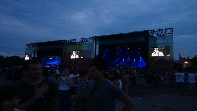 虽然第二天在很多人看来line up是最没亮点的,但是退场时的人潮依然惊人:从舞台到地铁站月台一路都在排队,路程至少需要半个小时以上。好在路上有雀巢冰爽茶公司的促销人员免费派送饮料(他们三天晚上6点到12点在主入口<同时也是出口>免费派发赠饮——只赠送不售卖),缓解了累积一天的疲劳。
